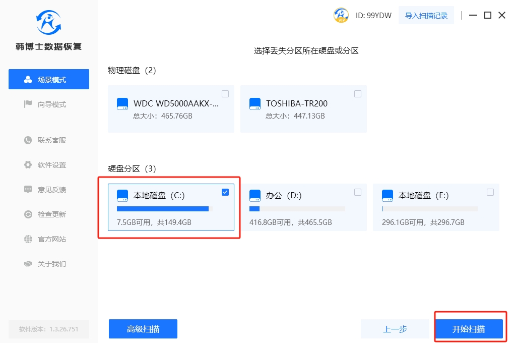 如果连接没有问题,那就使用数据恢复软件。只需将韩博士数据恢复安装到电脑上,然后按照软件提示操作,扫描你的移动硬盘,很可能就能找回丢失的文件了。