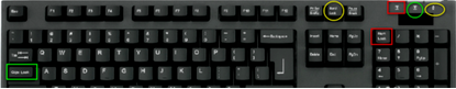 3.键盘上绿色方框为caps lock 大小写键,红色为数字键。黄色为scroll lock键,点击对应键盘 ,即可关闭指示灯及功能。