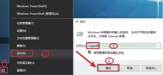 1.鼠标右击【开始菜单】,选择【运行】,在运行框中输入 regedit 。