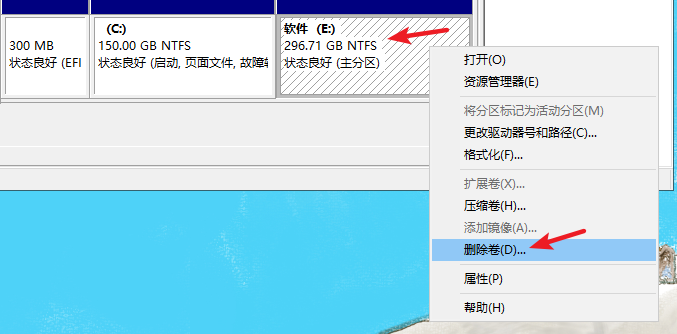 3. 在移动硬盘上单击鼠标右键,然后在菜单中选择删除卷