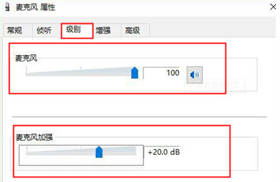 然后拖动蓝标加大麦克风声音,拖动麦克风加强下方的蓝标即可增强麦克风音效。