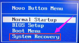 二、启动后跳出Novo Button Menu,选择:System Recovery,然后按下回车。