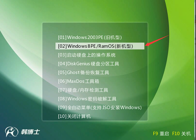 3、从U盘加载启动,选择02运行WinPE系统;