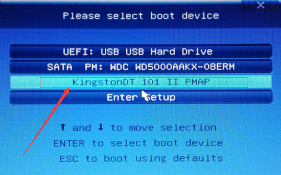 将刚制作好的U盘插在电脑的USB接口,开机并不断按下启动U盘快捷键直到出现下图所示的窗口为止,不同的电脑主板出现的情况都不一致。