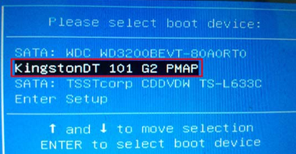 步骤2:启动电脑之后,当显示器闪过第一个画面,就需要在键盘上连续多次按昂达主板进入BIOS设置的热键:F11,然后在弹出的窗口中,用键盘上的方向键选择带有U盘启动盘品牌的选项,回车确定。