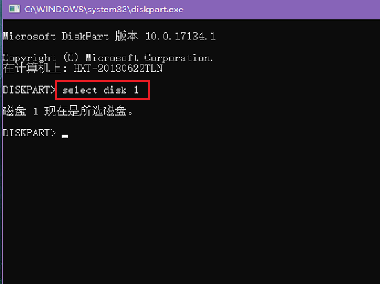 3、由于图示U盘的索引名是“磁盘1”,我们就在新打开的窗口中输入“select disk 1”命令,即可选择将要操作的磁盘。