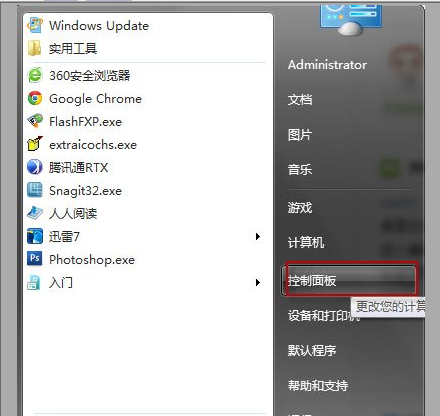 一、首先打开开始菜单,在弹出的菜单中选择“控制面板”。