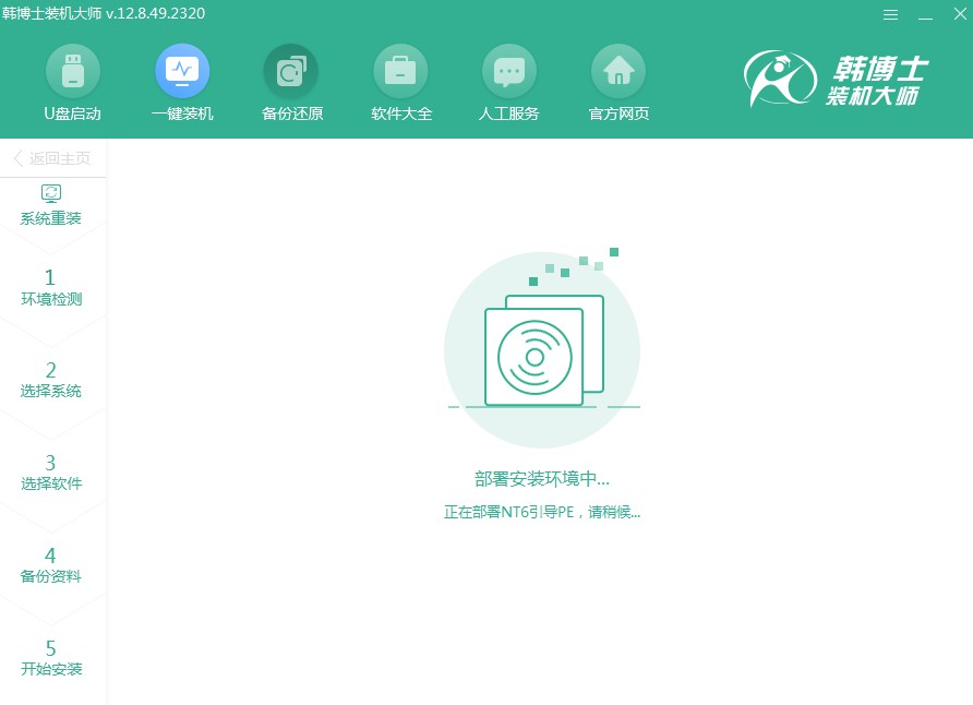第一步,下载“韩博士装机大师”,并保存到桌面。下载完成后,双击桌面图标打开软件,打开后点击“开始重装”,然后按照提示操作进行系统重装。