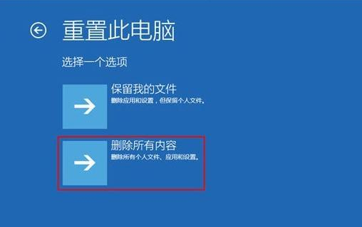 3.因为原始的win10系统被破坏了,因此需要选择“删除所有内容”。