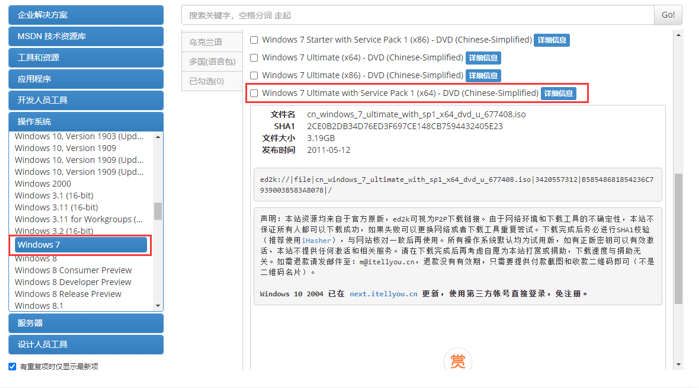 10.在界面中直接找到想要下载的镜像文件,小编直接选择win7 sp1 旗舰版 64位系统。