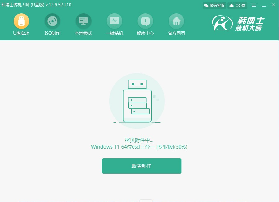4.然后系统开始下载系统文件,并制作U盘启动盘,因为文件大,所以需要一些时间,但无需任何手动操作,耐心等待即可。